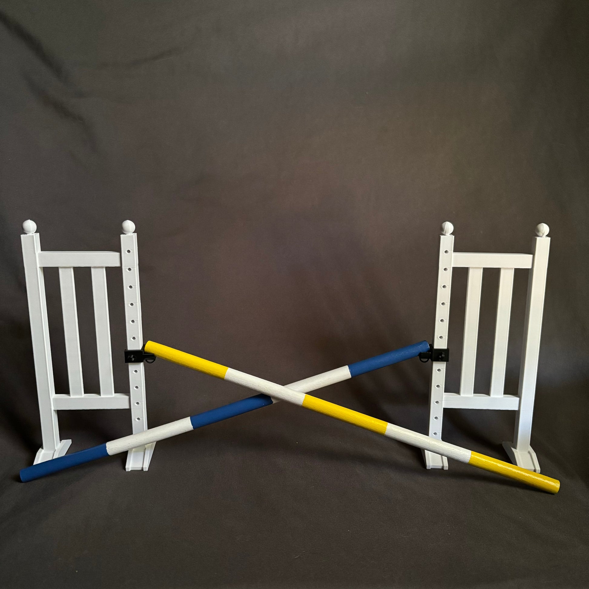 This set of straight standards is perfect for setting up jumps of all heights, or add a second pair of standards to make an oxer. They feature straight lines and a classic sphere finial. Our jump cups are custom for a perfect, solid fit.